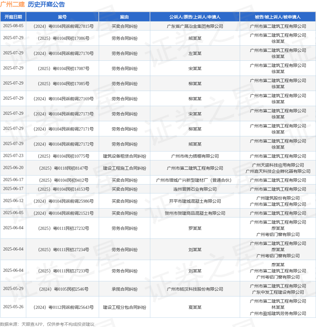 本站消息,根据天眼查APP显示,近日公布了一则广州市第二建筑工程有限公司作为被告/被上诉人的开庭公告,详细内容如下: